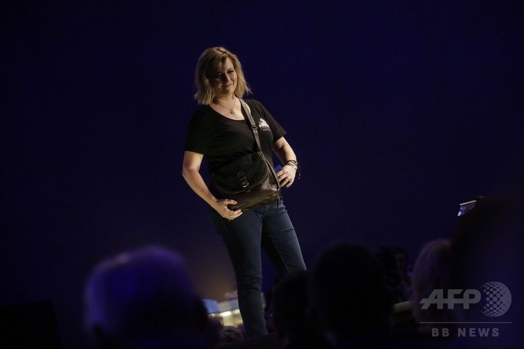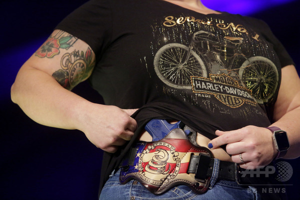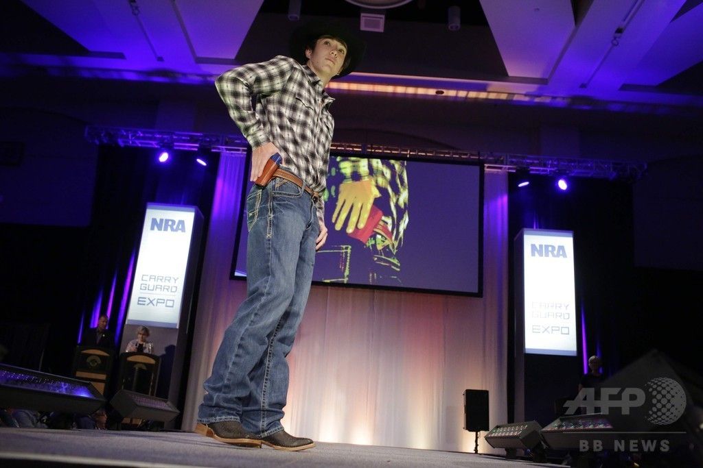 ミルウォーキーで25日、銃器を隠して携帯するための装具を紹介するファッション