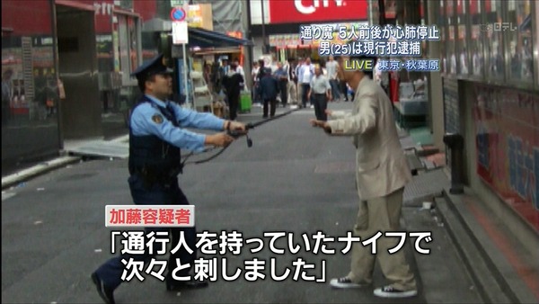 下等に対して警官が至近距離から警棒で間合いを取って