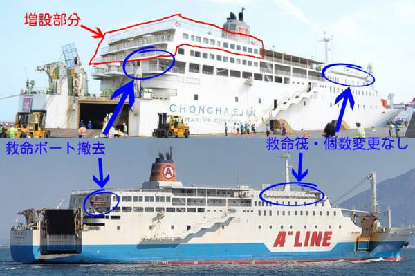 中古船を勝手に増設して高くしすぎて倒れて沈んだ