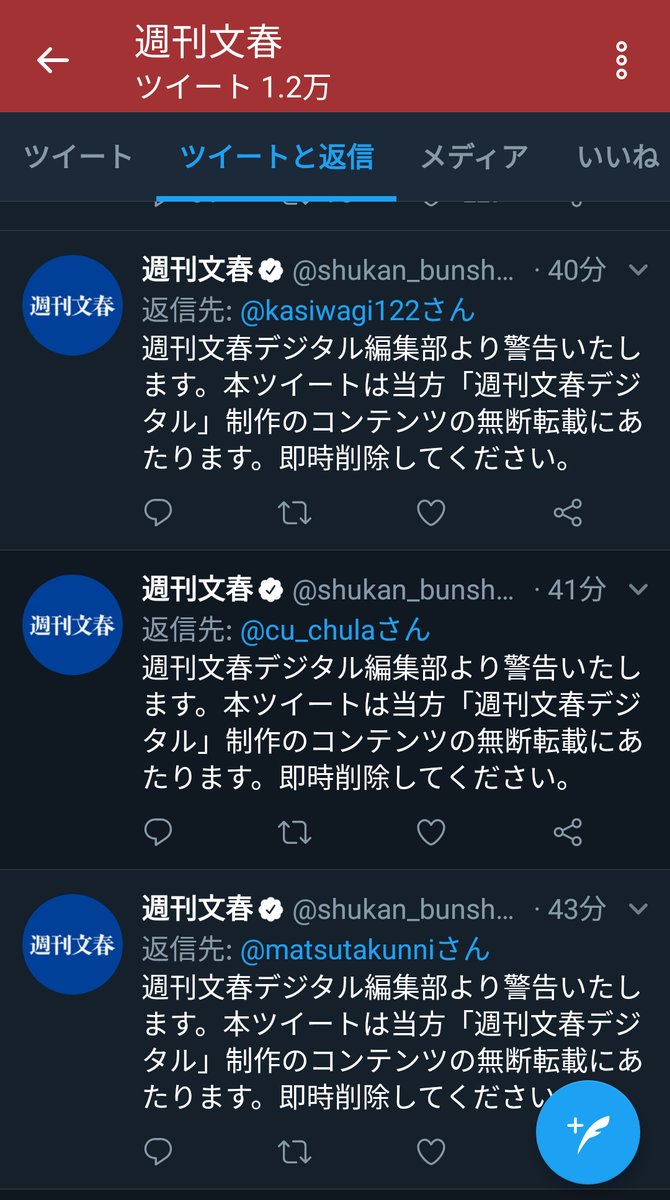 それを見た週刊文春の編集部が「週刊文春デジタル編集部より警告いたします。本ツイートは当方
