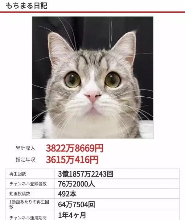 引用元: 猫のもちまる日記 世界的youtuberになる 再生100万超え 年収数億円の未来(画像あり)