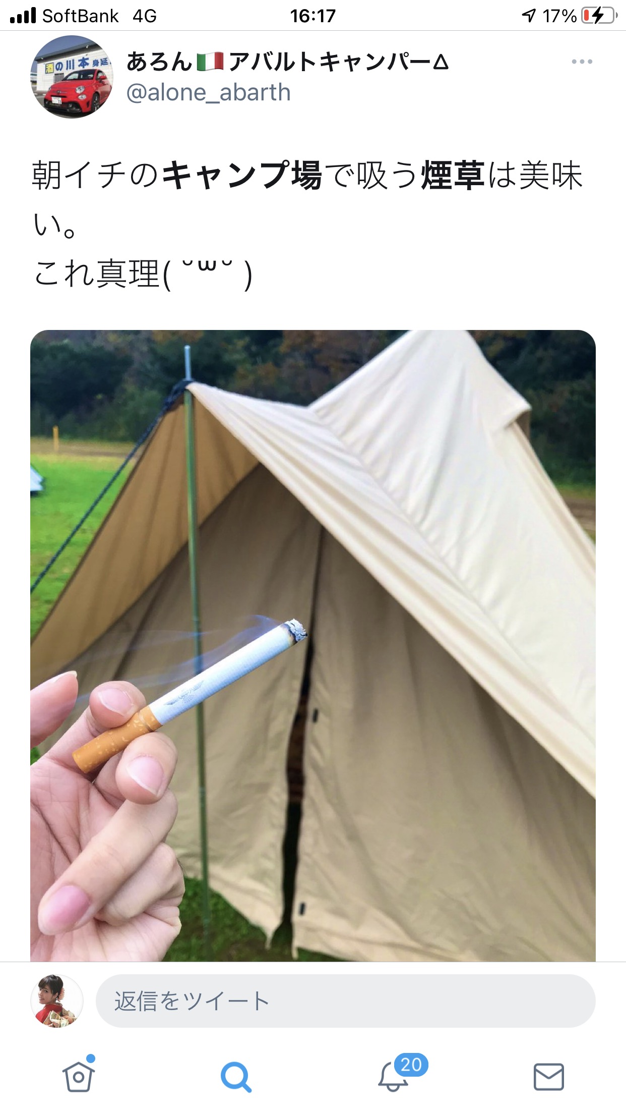 「キャンプ場で喫煙するという行為は喫煙所で焚火をすることと一緒だ」