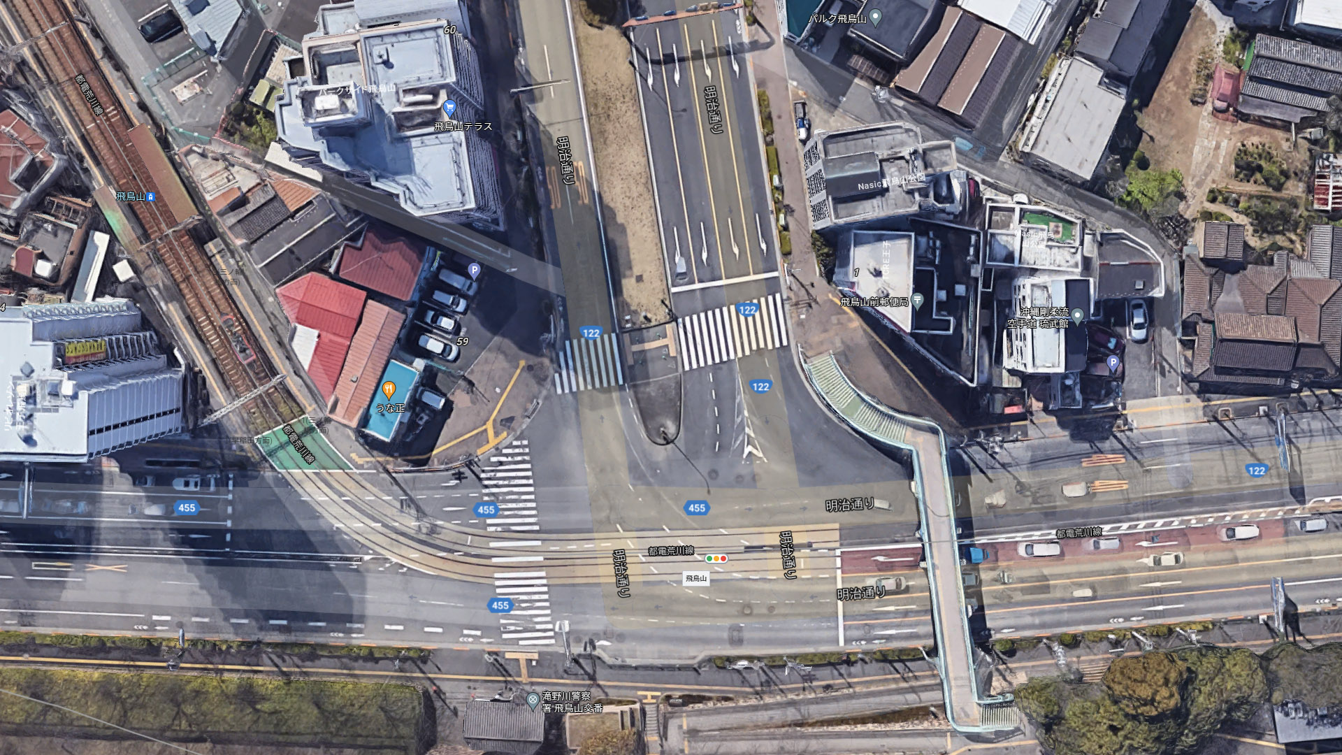 といいます。交差点で右折しようとしましたが、誤って飛鳥山停留場の線路内に進入して