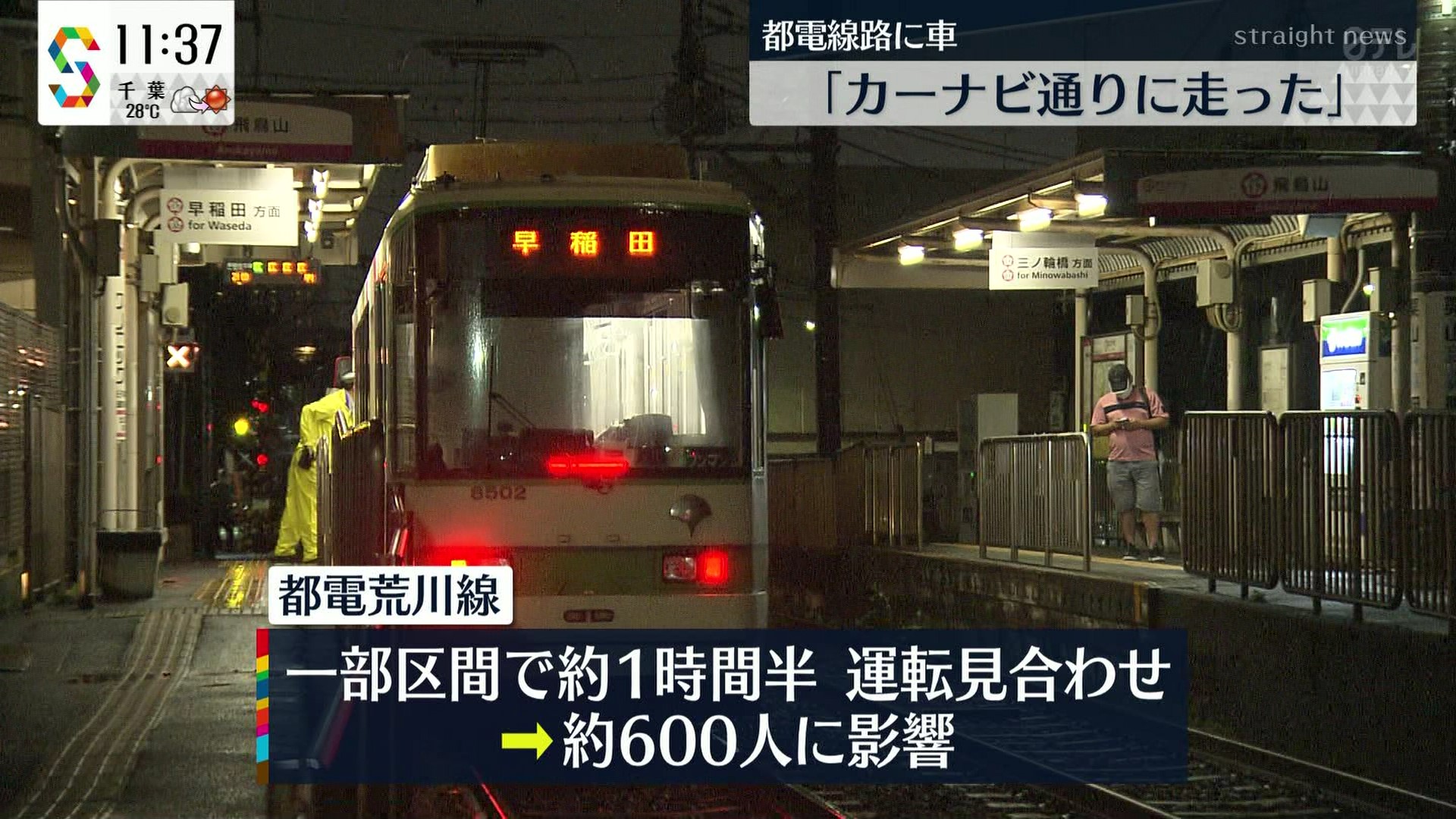 軽乗用車の線路への進入で、けが人などはいませんでしたが、この影響で都電荒川線は