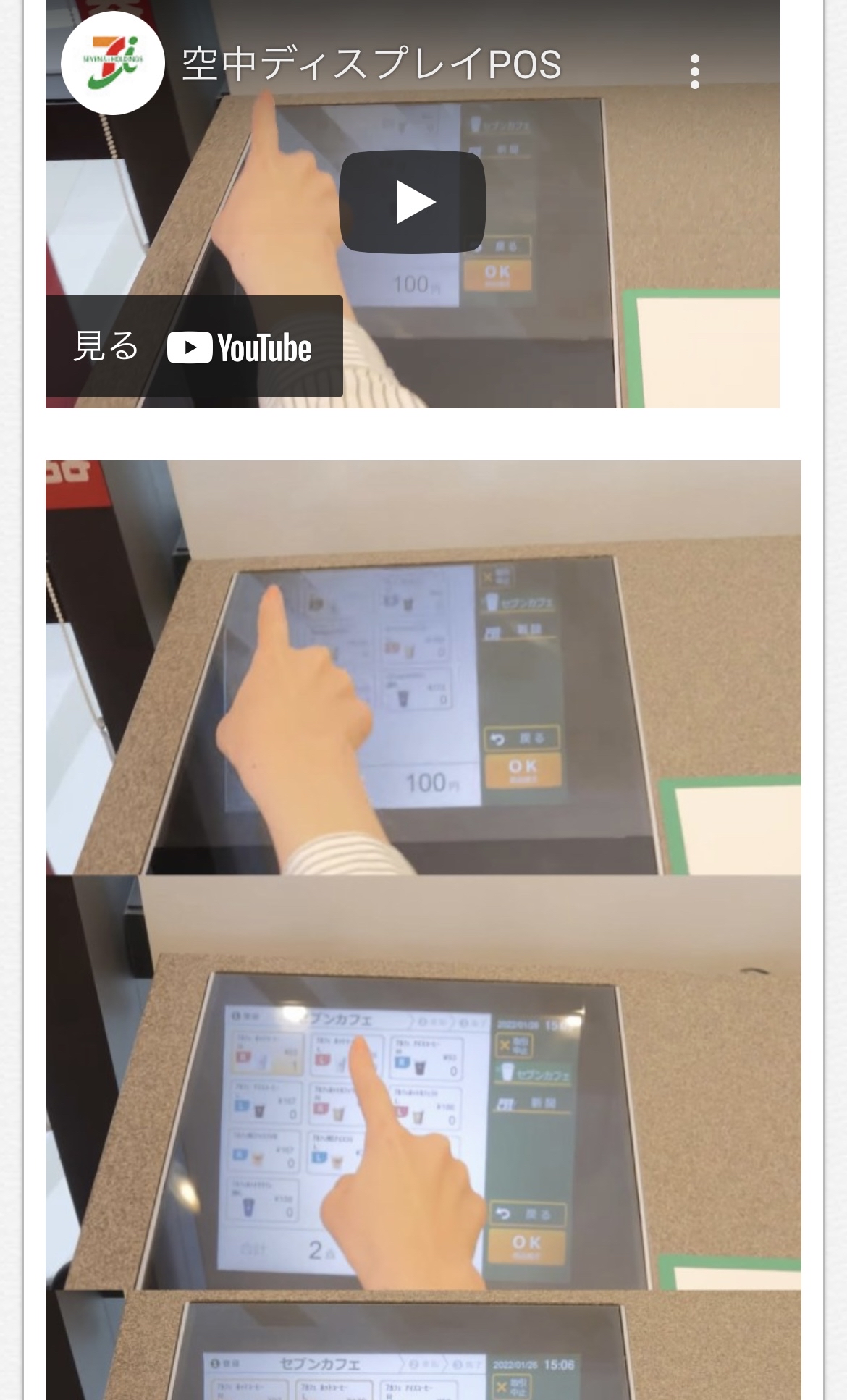 セブン―イレブン・ジャパンは28日、レジのタッチ画面の映像が空中に浮かび上がり、