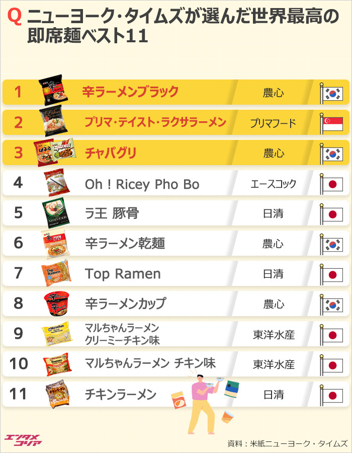 引用元: 【画像】チキンラーメンさん、世界で11番目に旨いインスタントラーメンに認定されてしまう…