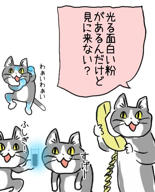 光る粉が珍しくて家族みんなで鑑賞、体に塗ったりして遊び