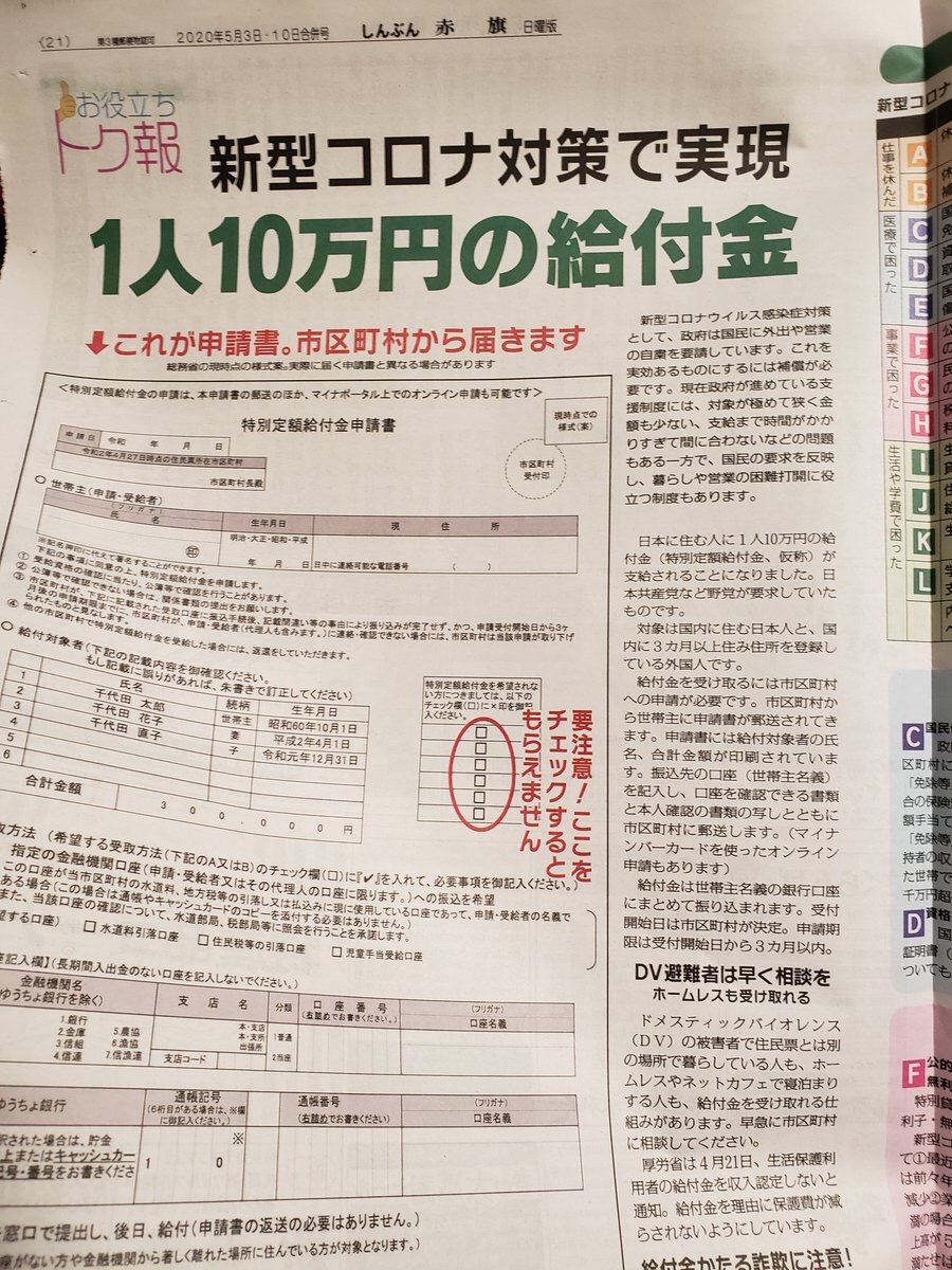 引用元: 【画像】10万給付金申請書にトラップがあると共産党が指摘