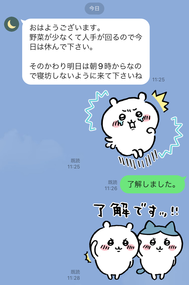 引用元: 【画像】スーパーの準社員になったワイの約1年前のLINEwww
