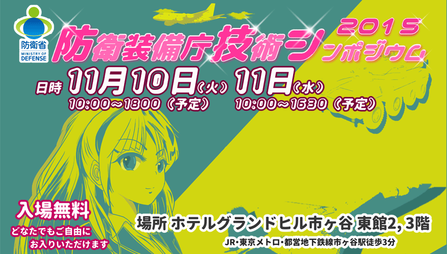 【防衛装備庁】萌え!?ポスター採用『作ってるのは武器ばっかりじゃないです』発足と同時に攻めの広報 2015年10月06日 カテゴリ:2chまとめ萌えニュース+板 mixiチェック 1:まとめらいぶ:2015/10/03(土) 12:25:09.42ID:???.net 10月1日に防衛省の外局として「防衛装備庁」が発足しました。同庁はさっそく「多くの人に親しみを持ってもらいたい」と、美少女風の技官のイラストをあしらった「萌えポスター」で近く開催するシンポジウムのPRに乗り出しました。 描いたのは30代男性技官 毎年、防衛省技術研究本部が開いてきた「防衛技術シンポジウム」。 そこでは一般の参加者を対象に、戦闘機やロボットなど防衛装備品の研究・開発事業の成果報告を行ってきました。しかし、実際に会場を訪れるのは研究者や軍事マニアばかり。「もっと多くの人に来てほしい」と、今年は「萌えポスター」の採用に踏み切りました。 描いたのは、30代の男性技官です。担当者は「実際に、こんな感じの女性はいないですけど、最近はリケジョなんかも話題だし、女性技官をイメージしました」と話しています。 「学生さんとかにも来て欲しい」 今年のシンポジウムでは「人工知能と人工意識の未来~機械と脳の競争と協調」と題した研究者の講演や、次世代無人航空機についての発表などが予定されています。担当者は「防衛省が作ってるのは武器ばっかりじゃないというところを知ってもらえたら。学生さんとかにも来て欲しい」と話しています。 防衛装備庁は、今年6月に設置を定めた法律が可決・成立しました。 戦闘機や護衛艦などの武器の研究開発から購入までを一手に担うことになります。 【with news】 【【防衛装備庁】萌え!?ポスター採用『作ってるのは武器ばっかりじゃないです』発足と同時に攻めの広報】の続きを読む タグ :#防衛装備庁#萌え#ポスター#採用#作ってる#武器#発足#同時#攻め#広報