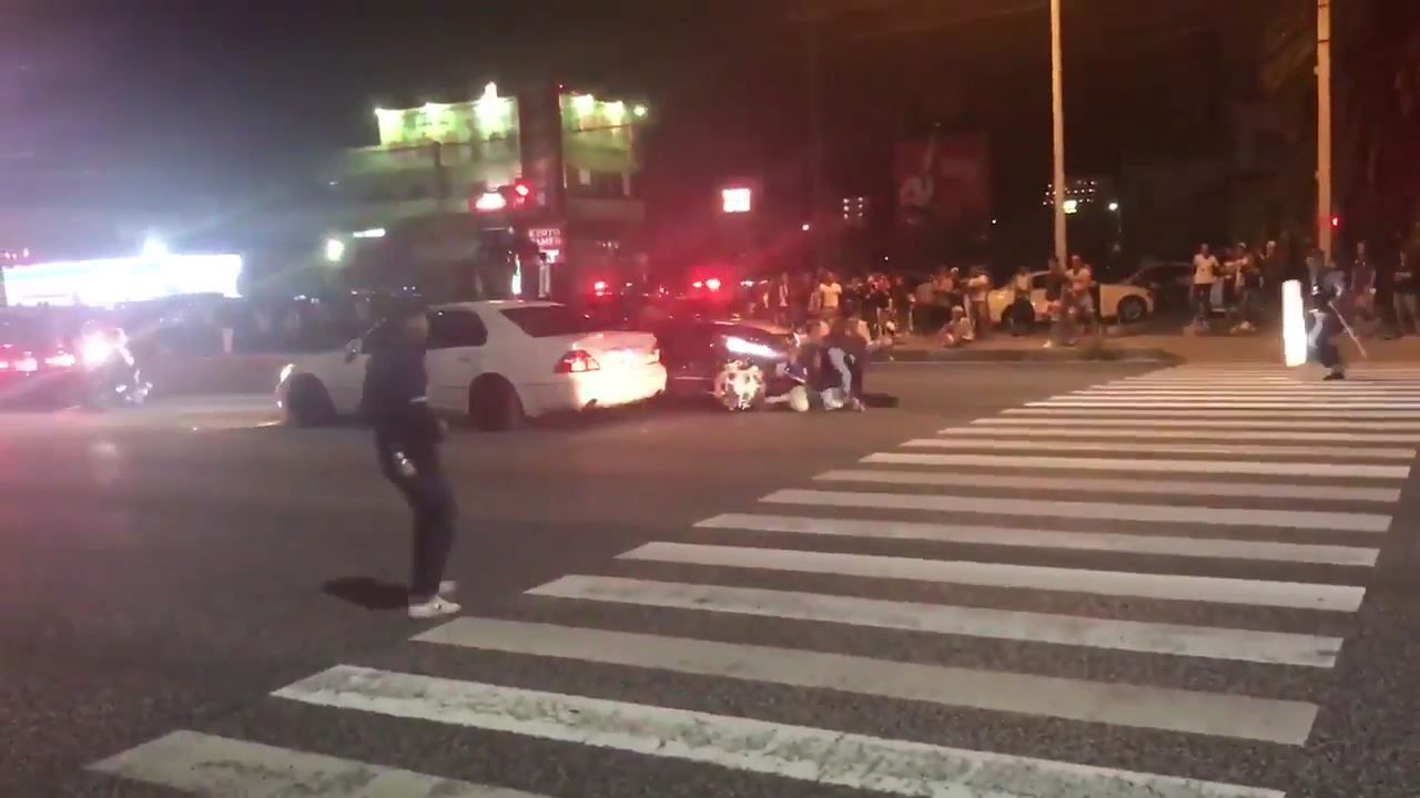 別の角度から撮影した動画も公開されており、またその周りには数十人の野次馬が