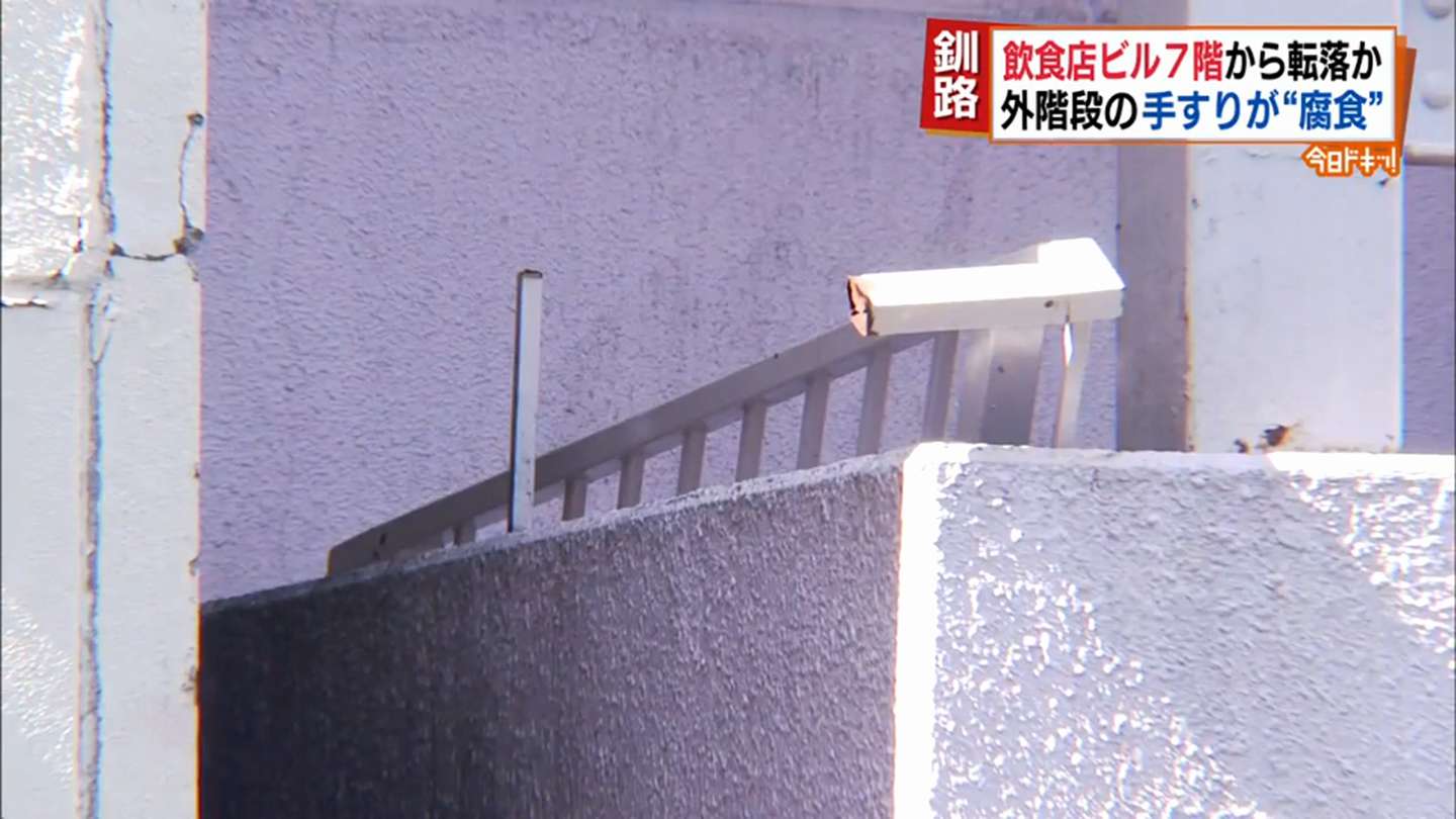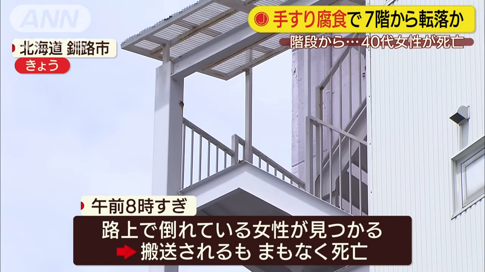 手すりが腐食していたのでしょうか。女性が死亡しました。