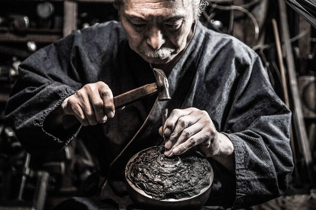 見られる鎚起(ついき)の職人技。