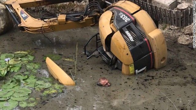 付近でパワーショベルを操作していた。ところが泥水のたまったくぼ地に転落した際、