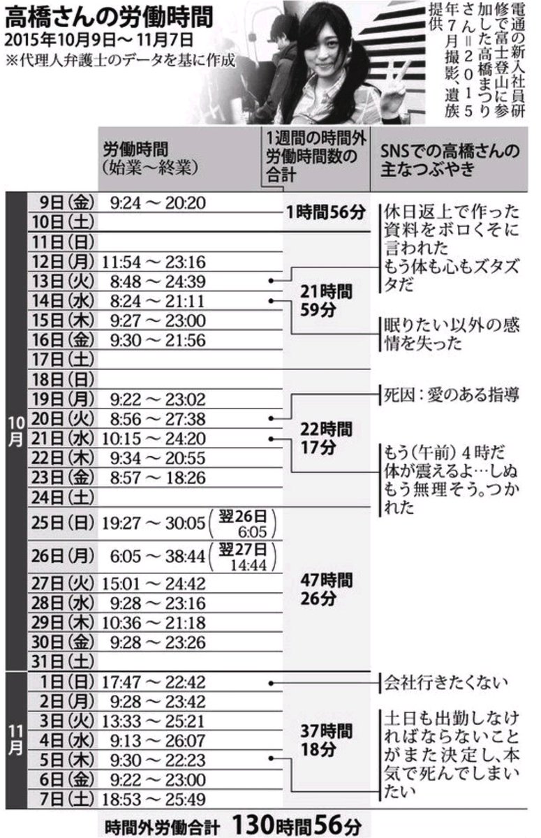 引用元: 【画像】電通で自殺した東大卒の高橋まつりさんの残業時間
