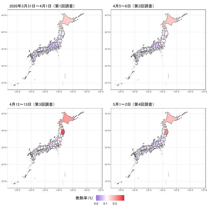 発熱率が上昇傾向だったものの、5月1~2日に行った第4回では前回からの減少が全国的に