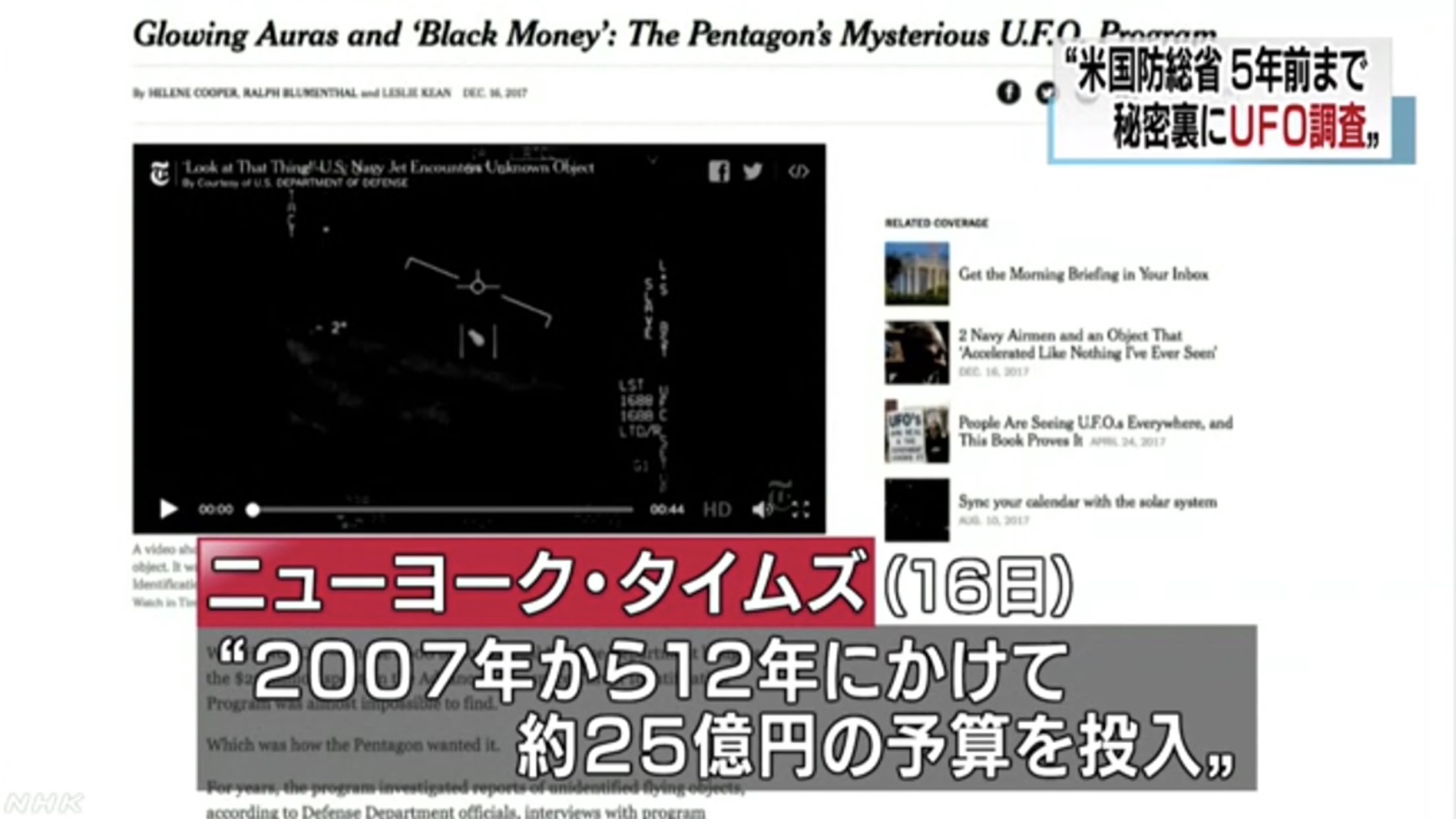 引用元: 悲報 宇宙人は地球に来ている 米国防総省のUFO研究で判明 NHK報道(画像あり)